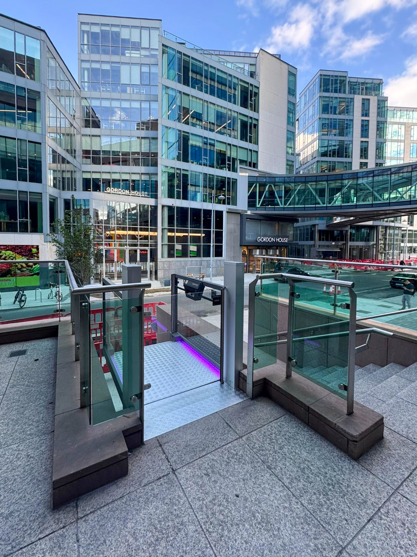 The VPL150 lift, delivers both form and function - with its clear glass panels, clean lines and vibrant underfloor lighting that adds a subtle yet distinct modern edge. Set against a backdrop of steel, glass and innovation, this project blends accessibility into the architecture without compromising the building’s sharp urban aesthetic.
